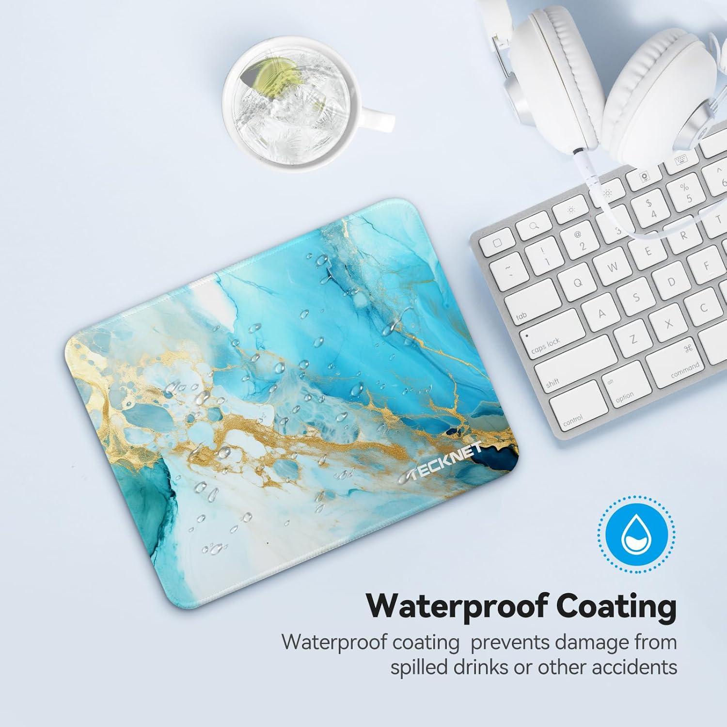 TECKNET 4 Pack Mouse Pad with Anti-fray Stitching, Waterproof Surface & Non-Slip Rubber Base with Stitched Edges Gaming Mouse Mat for Laptop, Compatible with Laser and Optical Mice - Black(Blue-green marble)