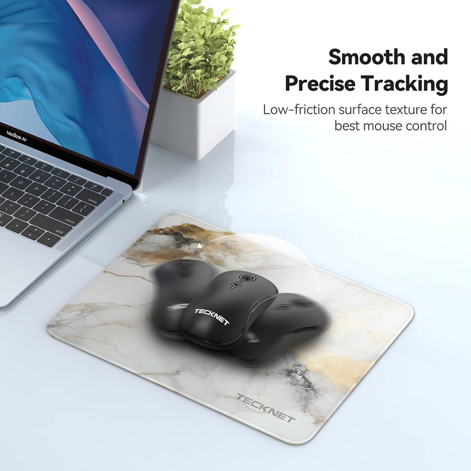 TECKNET 4 Pack Mouse Pad with Anti-fray Stitching, Waterproof Surface & Non-Slip Rubber Base with Stitched Edges Gaming Mouse Mat for Laptop, Compatible with Laser and Optical Mice – Black(Platinum marble)
