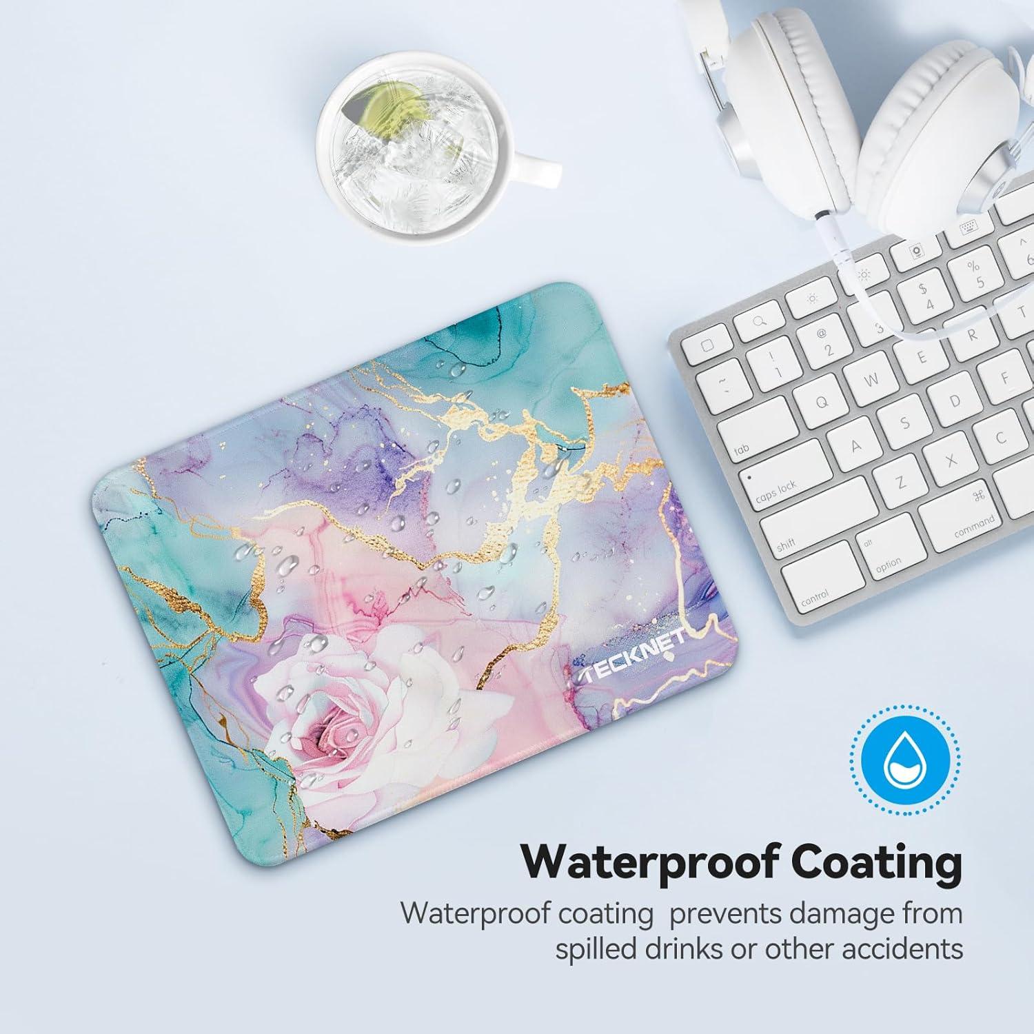 imageTECKNET 4 Pack Mouse Pad with Antifray Stitching Waterproof Surface ampamp NonSlip Rubber Base with Stitched Edges Gaming Mouse Mat for Laptop Compatible with Laser and Optical Mice  BlackRose marble