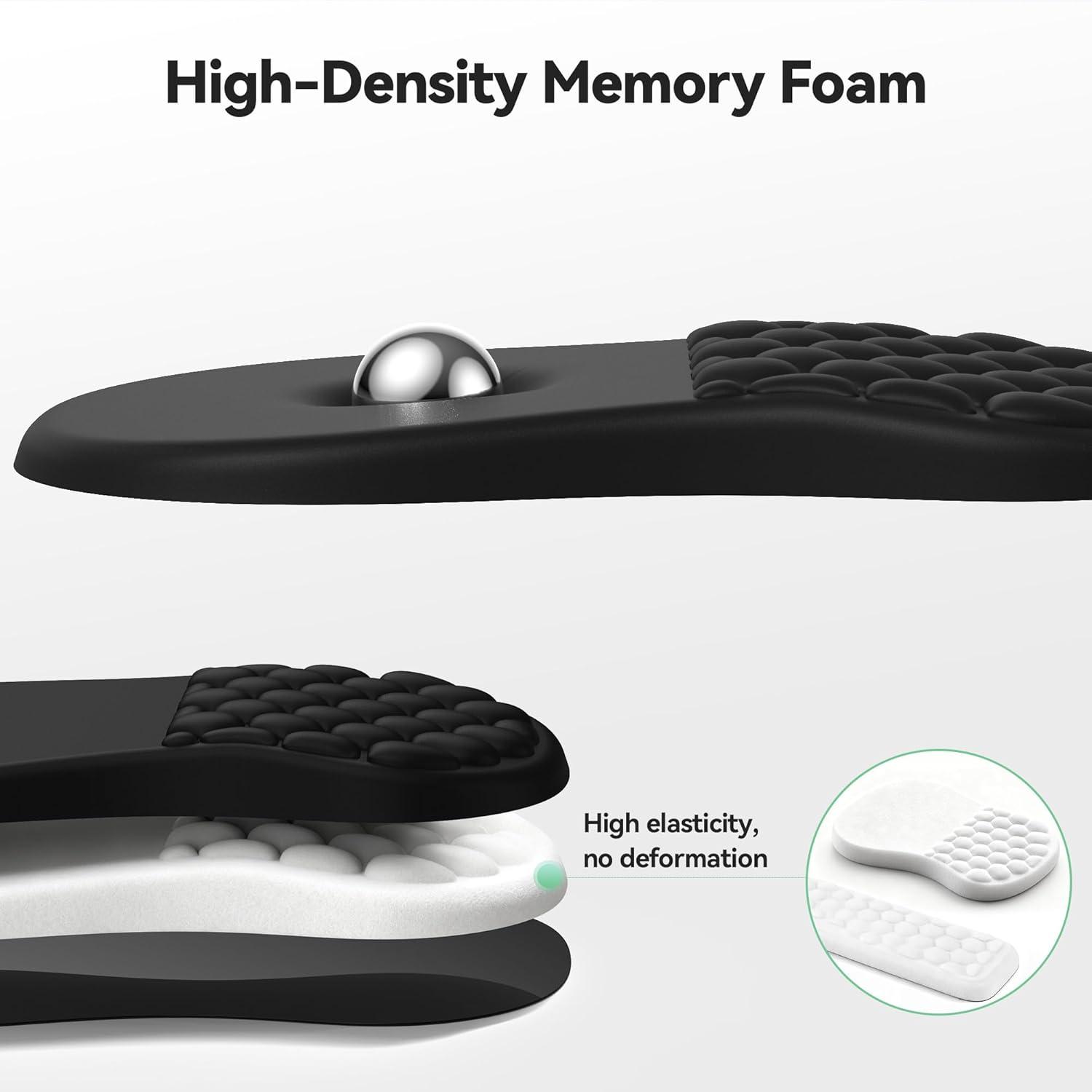 【High-Density Memory Foam Comfort】Filled with premium high-density memory foam, the wrist rest offers soft, slow-rebound cushioning that adapts to your wrist without flattening. It maintains long-lasting support and comfort, outperforming ordinary gel pads and ensuring a cloud-like feel during continuous work sessions.
