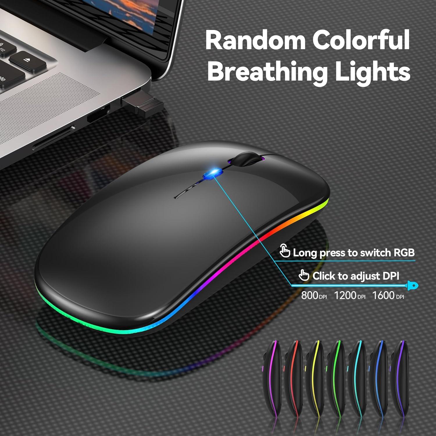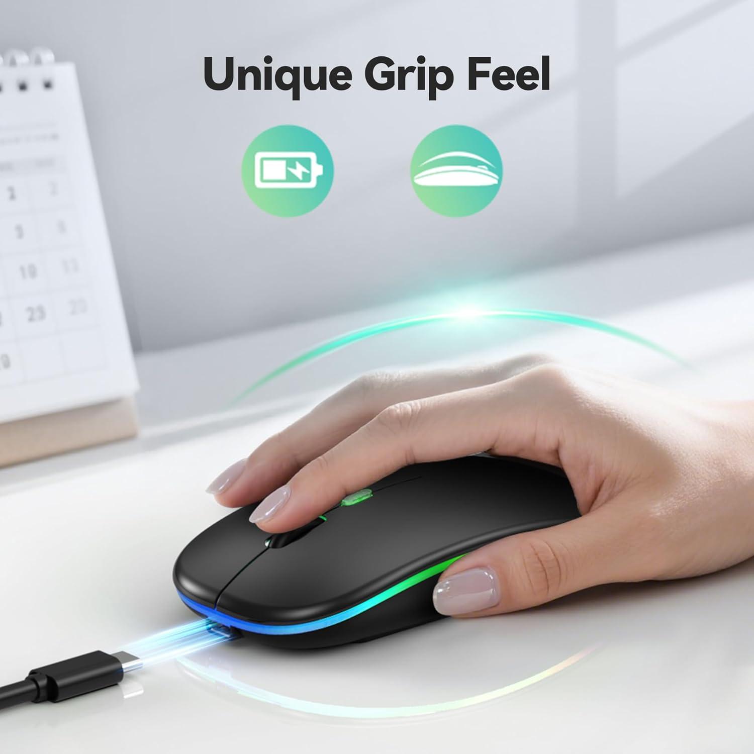 Rechargeable & Energy-Saving Design:Built-in rechargeable battery eliminates the need for disposable batteries. The mouse automatically enters sleep mode after 5 minutes of inactivity to conserve power, and the LED light can be turned off when not needed (long-press the DPI button).