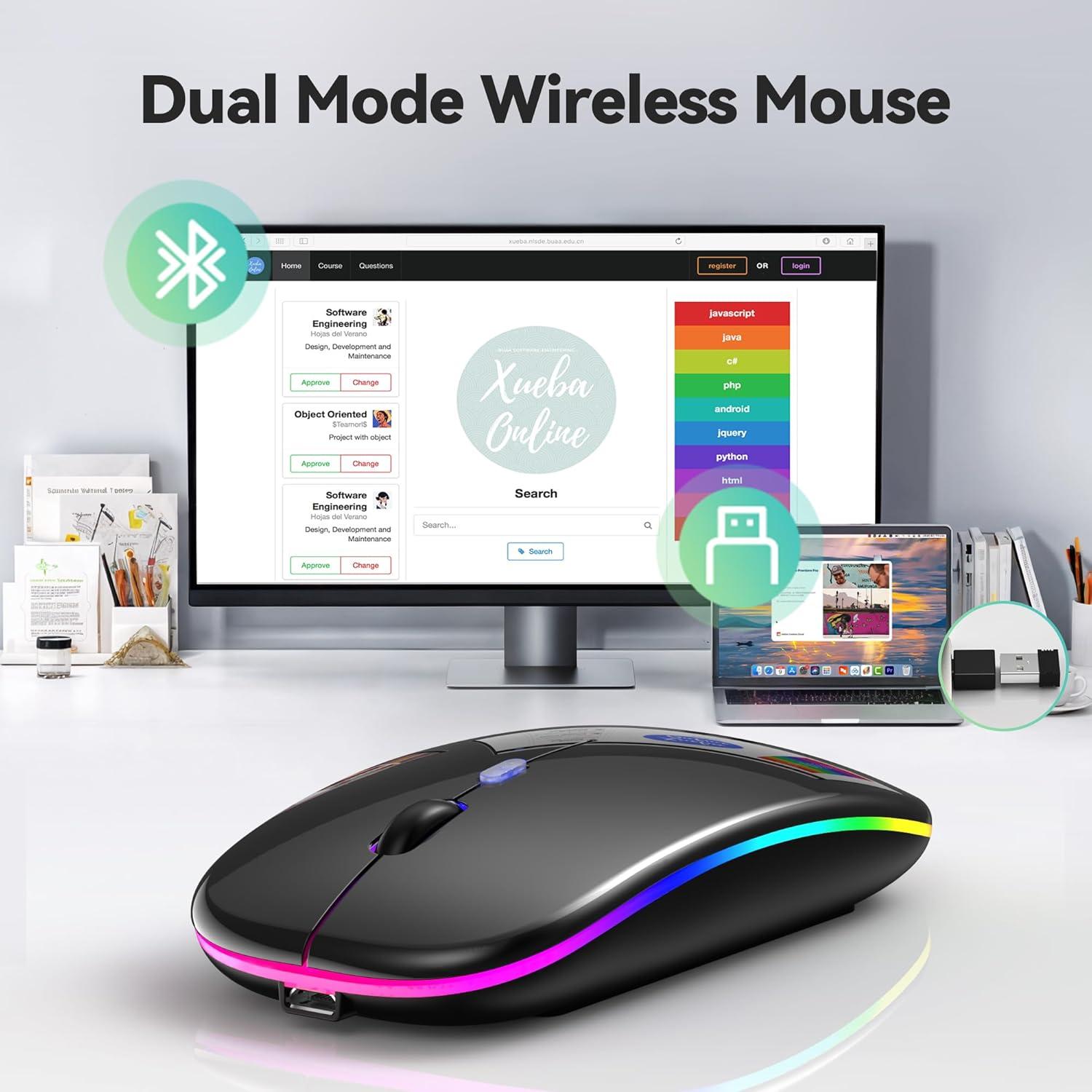 Dual Connection & Stable Performance:Easily switch between devices with dual-mode connection (Bluetooth and 2.4G USB). Plug & Play design offers fast, stable transmission up to 10m/33ft with no delays or dropouts—perfect for laptops, tablets, and desktops.